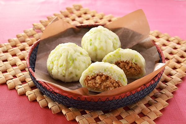 - 大豆の"soy"と美味しいの"yummy"を掛け合わせたネーミングにしました。大きくてどっしりなのに、大豆の風味でさっぱりと食べられる肉まんです。刻んだ枝豆入りの皮と大豆ミートの餡で栄養たっぷり、彩り豊かな一品です。